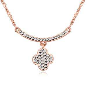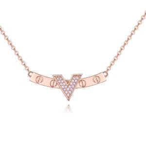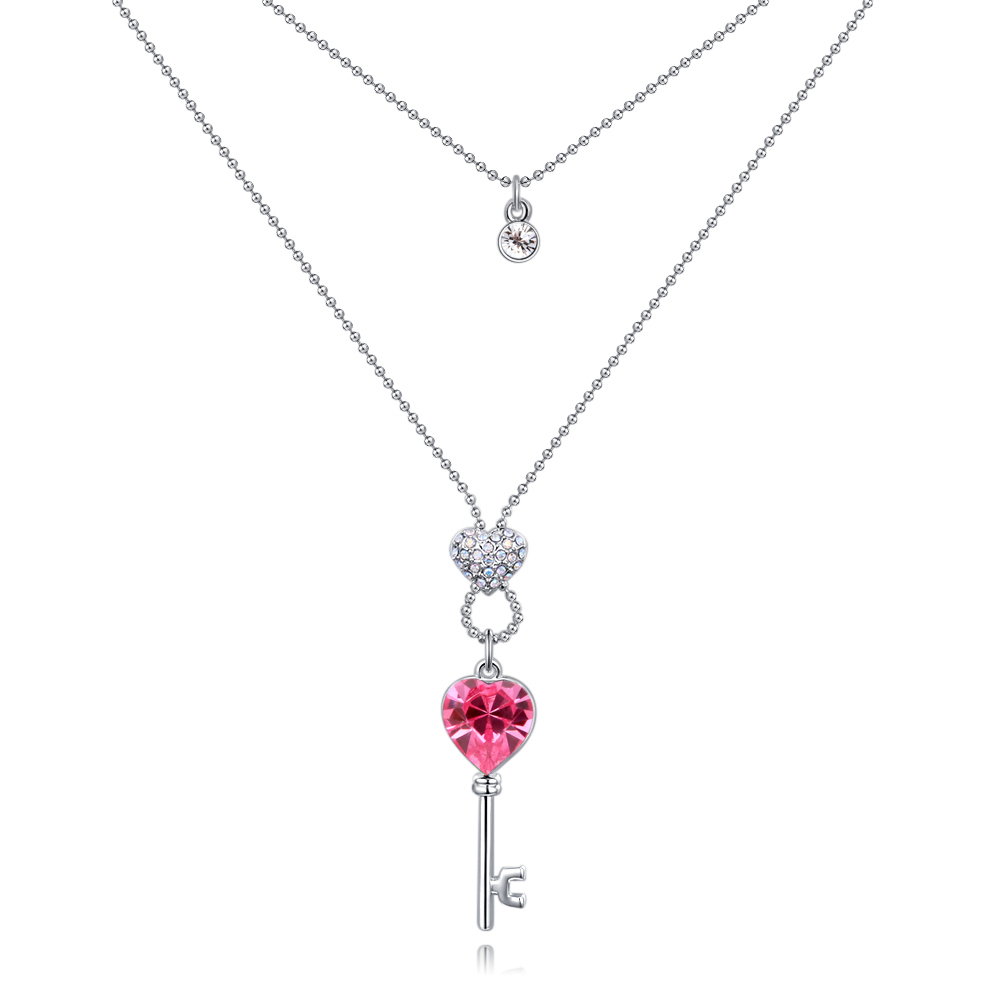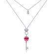 Hermoso collar en baño de oro blanco de 18 quilates, diseño de llave en forma de corazón con cristales en color rosa y blanco. Fabricado en una estructura de aleación de platino con rodio sin níquel