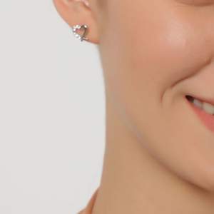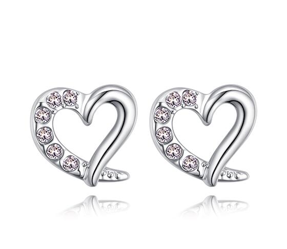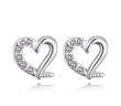 Hermosos aretes en baño de oro blanco de 18 quilates, diseño de corazón con incrustraciones de cristales en color blanco. Fabricado en una estructura de aleación de platino con rodio sin níquel.