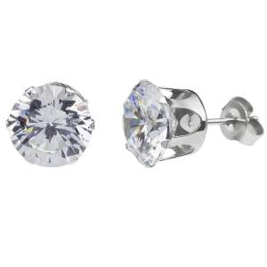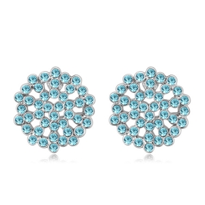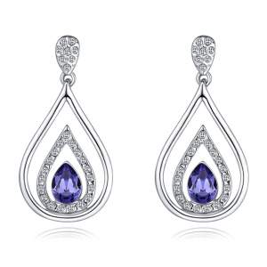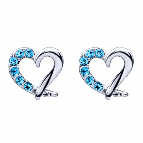 Hermosos aretes en baño de oro blanco de 18 quilates, diseño de corazón con incrustraciones de cristales en color azul. Fabricado en una estructura de aleación de platino con rodio sin níquel.