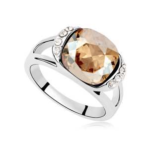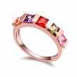 Delicado anillo en baño de oro rosa de 18 quilates, fino diseño con cristales de colores corte princesa. Fabricado en una estructura de aleación de platino con rodio sin níquel.