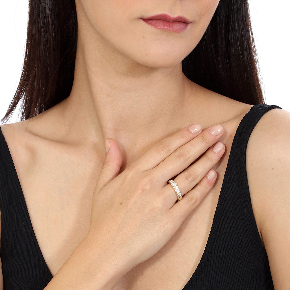 Anillo en baño de oro amarillo de 18 quilates, lindo diseño de corazón con incrustaciones de cristales en color blanco. Fabricado en una estructura de aleación de platino con rodio sin níquel.