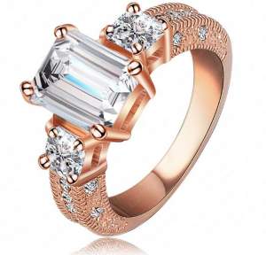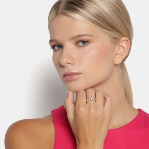 Anillo en baño de oro rosa de 18 quilates, diseño de corazón con incrustaciones de cristales en color blanco. Fabricado en una estructura de aleación de platino con rodio sin níquel.