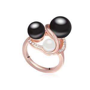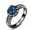 Lindo anillo en cerámica negra, fino diseño, con cristal azul corte brillante e incrustaciones de cristales en color blanco.