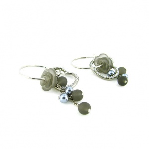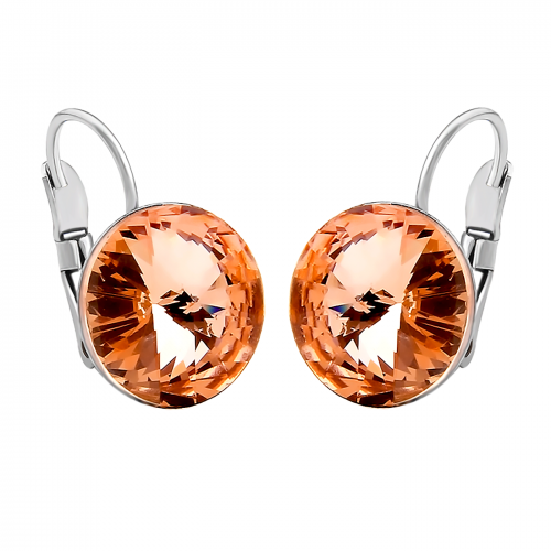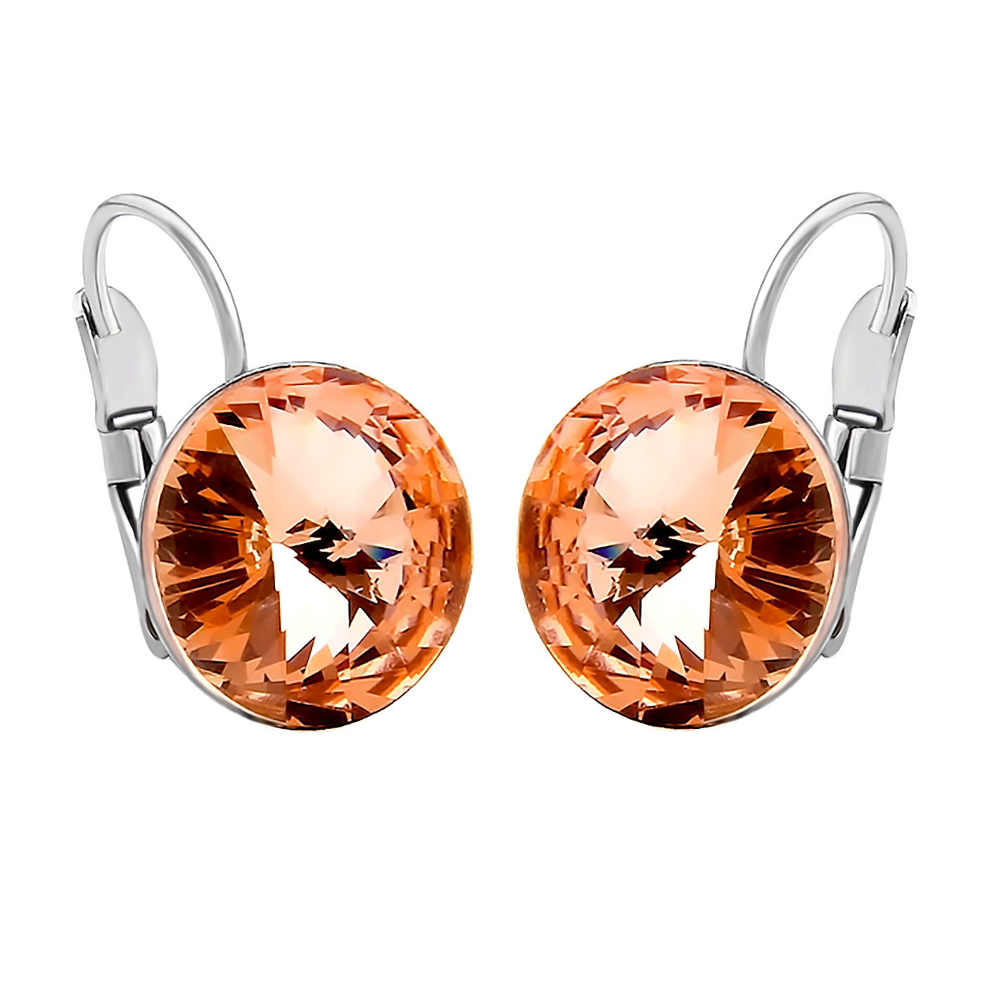 Lindos aretes en baño de oro blanco de 18 quilates, con cristal en color ambar. Fabricado en una estructura de aleacion de platino con rodio sin niquel.