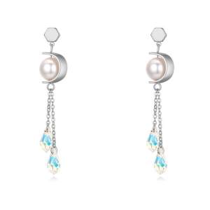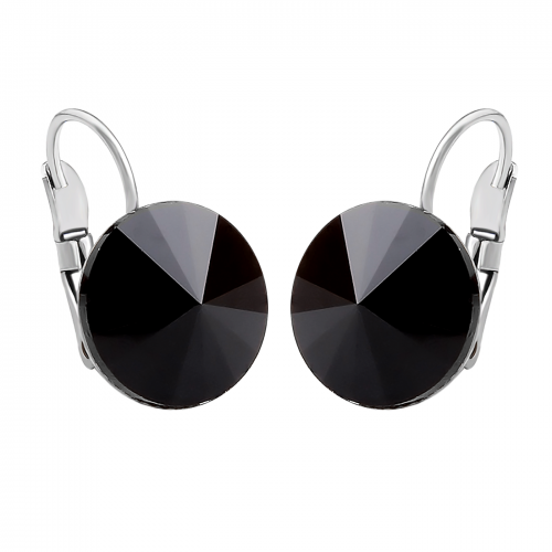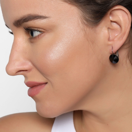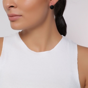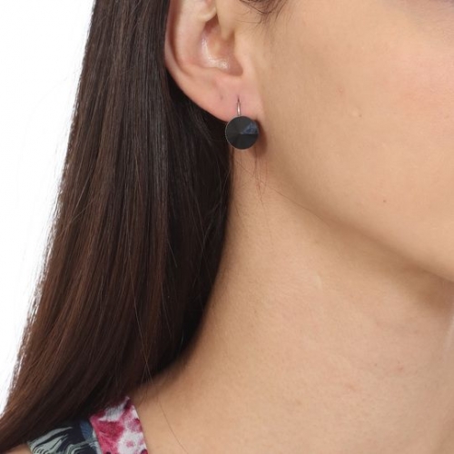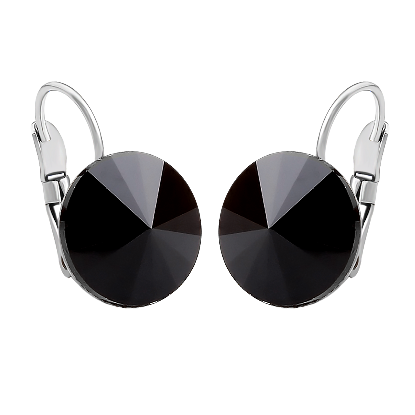 Lindos aretes en baño de oro blanco de 18 quilates, con cristal en color negro corte redondo.