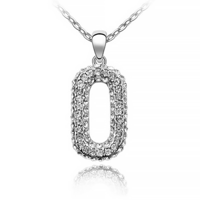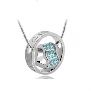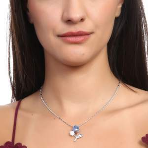 Dije con cadena en baño de oro blanco de 18 quilates, diseño de flores con incrustaciones de cristales en color azul y blanco. Fabricado en una estructura de aleación de platino con rodio sin níquel.