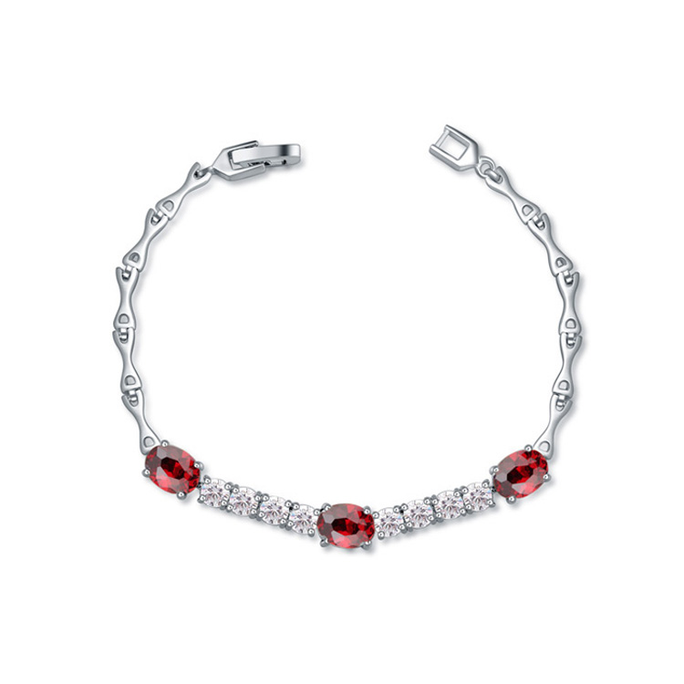 Hermoso brazalete en baño de oro blanco de 18 quilates, con incrustaciones de cristales en color naranja y blanco. Fabricado en una estructura de aleación de platino con rodio sin níquel.