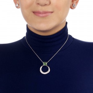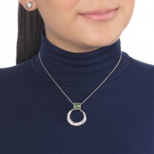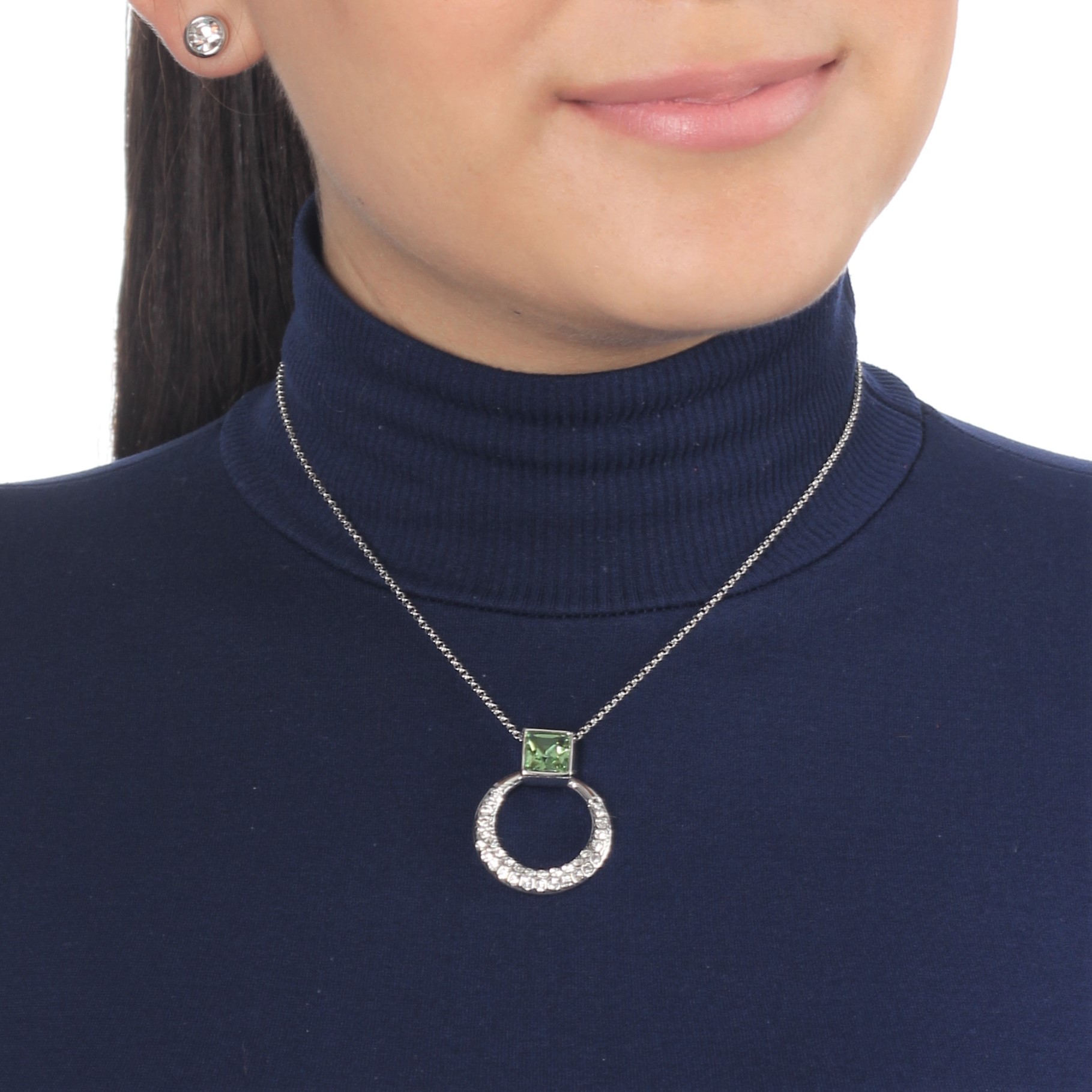 Dije con cadena en baño de oro banco de 18 quilates, diseño de anillo con incrustaciones de cristales en color blanco y verde. Fabricado en una estructura de aleación de platino con rodio sin níquel.