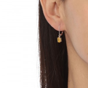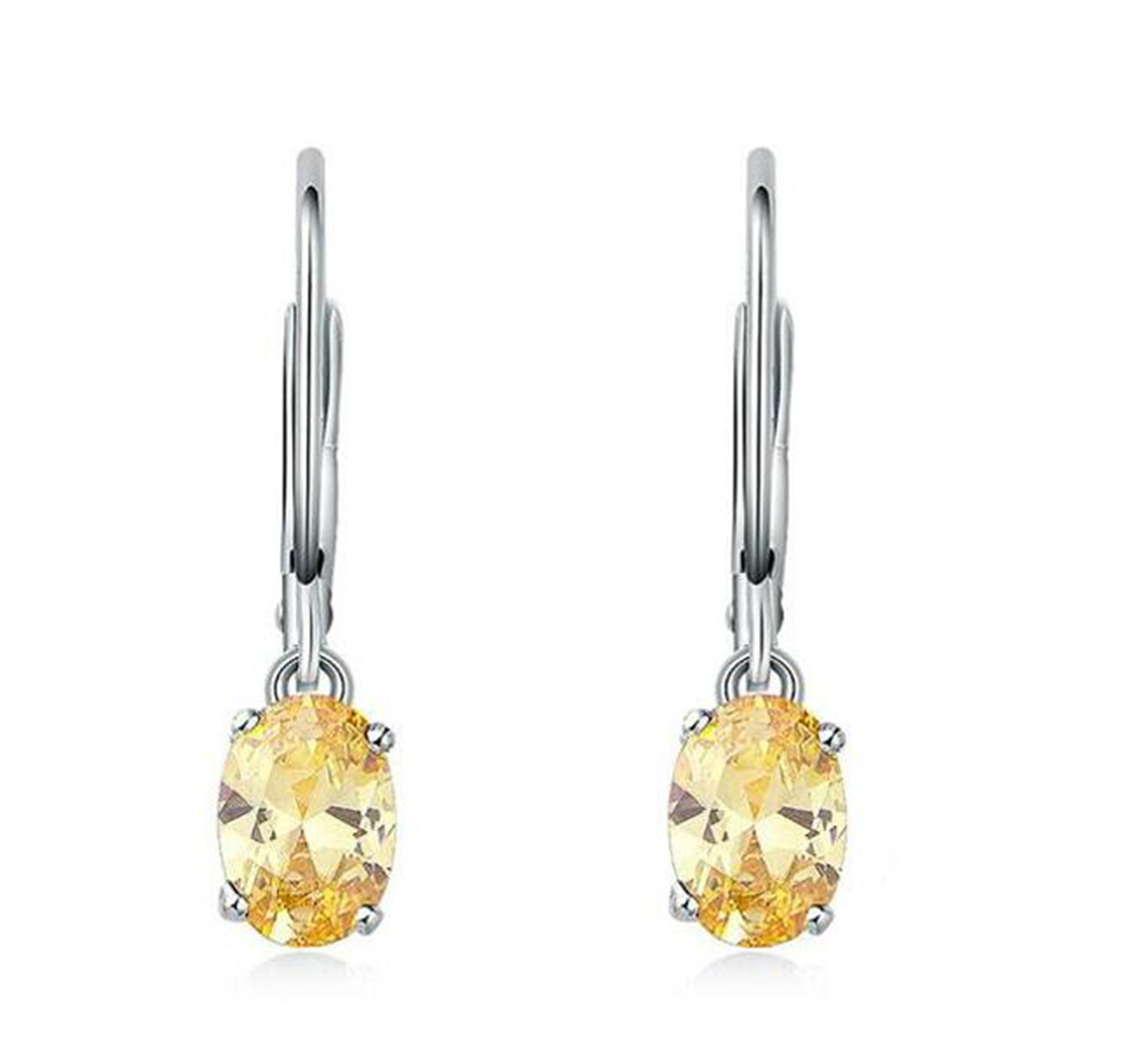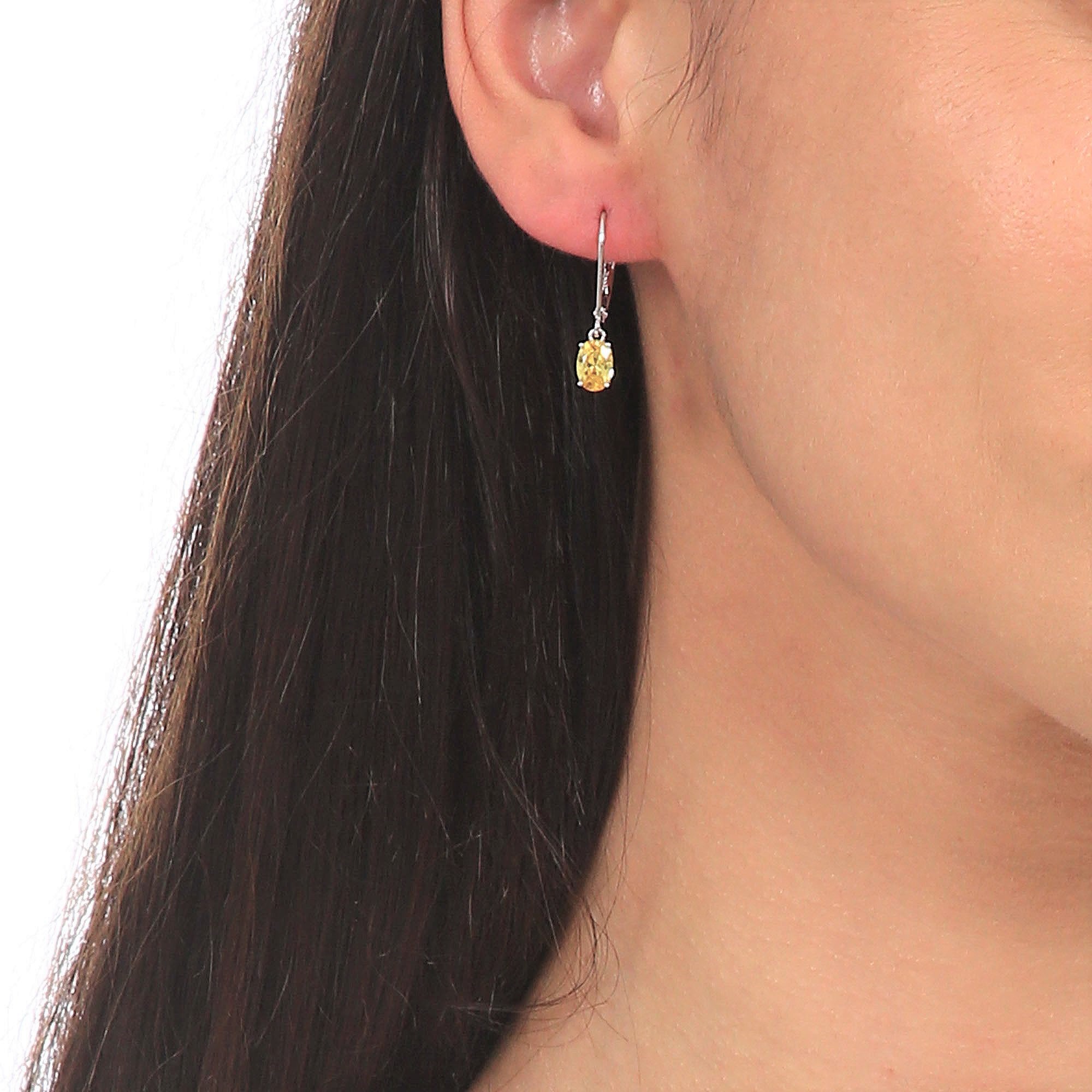 Lindos aretes en baño de oro blanco de 18 quilates, con incrustaciones de cristal amarillo corte oval. Fabricado en una estructura de aleación de platino con rodio sin níquel.