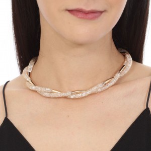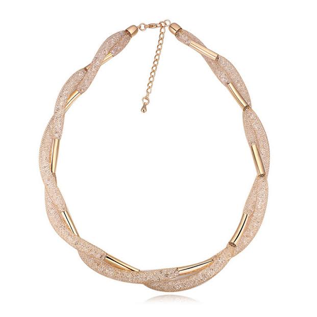 Collar con baño de oro amarillo de 18 quilates, diseño de malla entrelazada con cristales dentro en color blanco. Fabricado en una estructura de aleación de platino con rodio sin níquel.