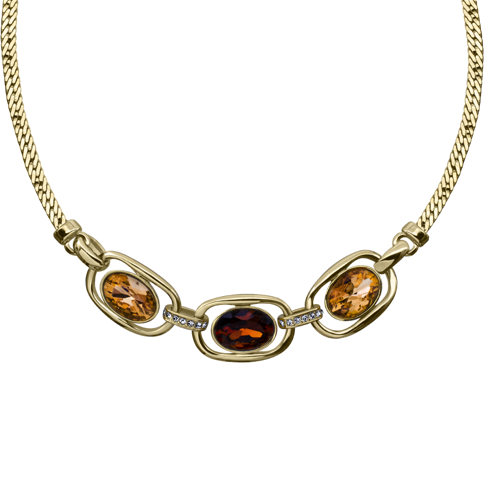 Bello collar en baño de oro amarillo de 18 quilates, lindo diseño con incrustación de cristales ámbar corte oval.