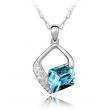 Dije con cadena en baño de oro blanco de 18 quilates, fino diseño con cirstal azul e incrustaciones de cristales blancos. Fabricado en una estructura de aleación de platino con rodio sin níquel.