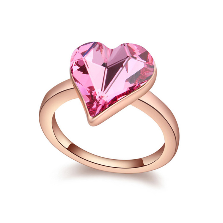 Precioso anillo en baño de oro rosa de 18 quilates, diseño de corazón con incrustación de cristal en color rosa.