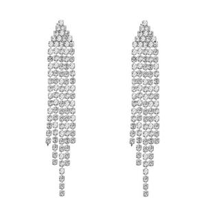 Hermosos aretes en baño de oro blanco de 18 quilates, lindo diseño de estrellas con cadenas e incrustración de cristales en color blanco. Fabricado en una estructura de aleación de platino con rodio sin níquel.