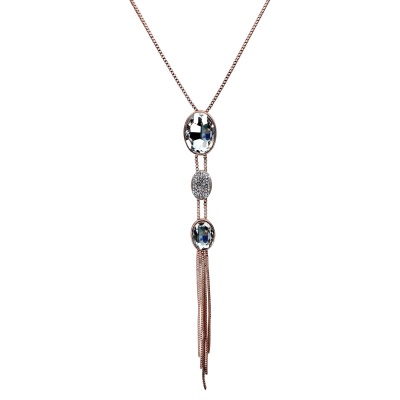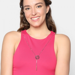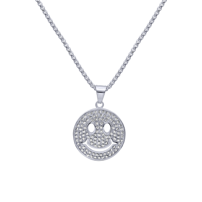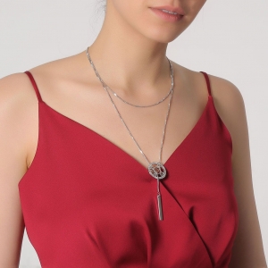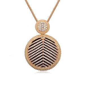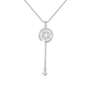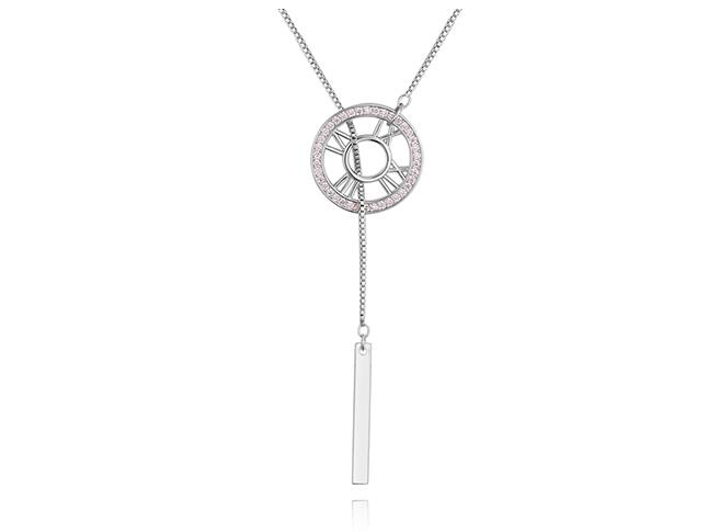 Original collar en baño de oro blanco de 18 quilates, diseño de circulo con numeros romanos e incrustraciones de cristales en color blanco. Fabricado en una estructura de aleación de platino con rodio sin níquel.