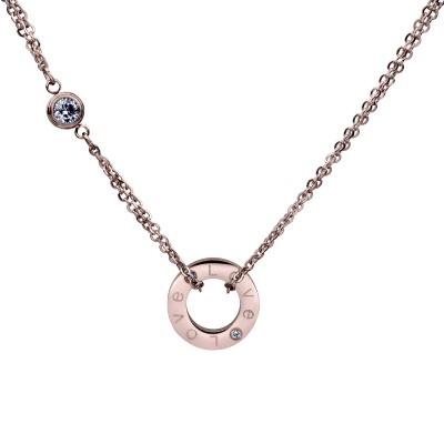 Collar en baño de oro blanco de 18 quilates, fino diseño de curva con incrustaciones de cristales en color blanco y cristal rosa. Fabricado en una estructura de aleación de platino con rodio sin níquel.
