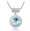 Dije con cadena en baño de oro blanco de 18 quilates, diseño de circulo con incrustaciones de cristales en color azul y blanco. Fabricado en una estructura de aleación de platino con rodio sin níquel.