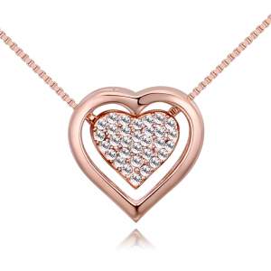 Dije con cadena en baño de oro blanco de 18 quilates, diseño de circulo con incrustaciones de cristales en color blanco y morado. Fabricado en una estructura de aleación de platino con rodio sin níquel.