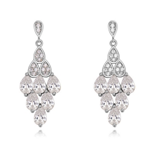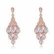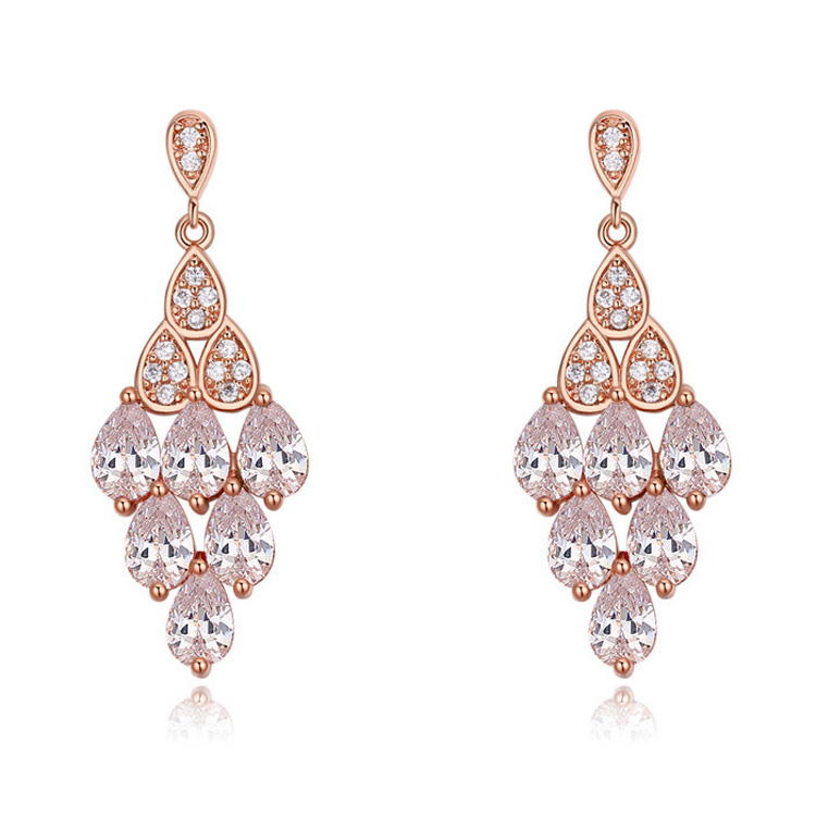 Hermosos aretes en baño de oro rosa de 18 quilates, diseño de cascada con incrustaciones de cristales en color blanco. Fabricado en una estructura de aleación de platino con rodio sin níquel.