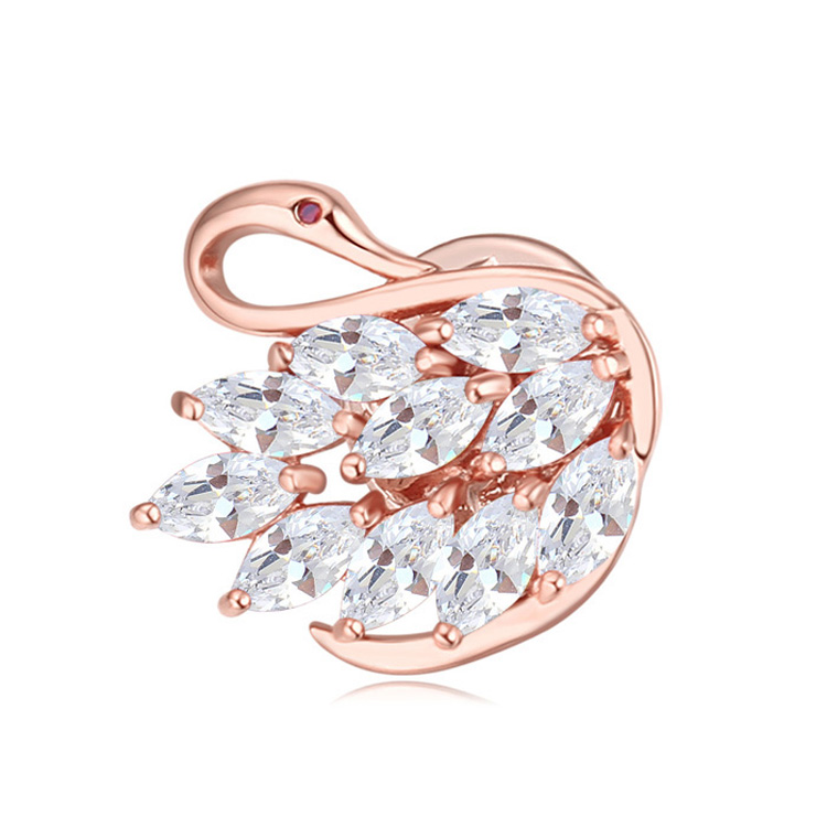 Prendedor en baño de oro rosa de 18 quilates, diseño de cisne, con cristales blancos corte marquesa y pequeño cristal ámbar. Fabricado en una estructura de aleación de platino con rodio sin níquel.