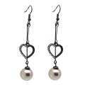 Originales pendientes de acero inoxidable, con un fino corazón, perla color gris e incrustaciones de cristales blancos.