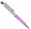Bolígrafo en baño de oro blanco de 18 quilates, cubierta color lila, con cristales en color blanco. Fabricado en una estructura de aleación de platino con rodio sin níquel.