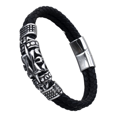 Pulsera tejida de cuero estilo doble, con detalles y broche de imán en acero inoxidable.1. Joyería hipoalergénica.2. Incluye cajita de joyería.3. Garantía de 30 días por defectos de fabrica.