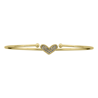 Hermoso brazalete en baño de oro amarillo de 18 quilates , fino diseño de corazón con incrustaciones de cristales en color blanco. Fabricado en una estructura de aleación de platino