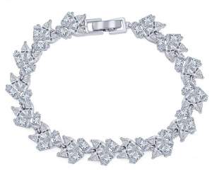 Elegante pulsera en baño de oro blanco de 18 quilates, con incrustaciones de cristales corte marquesa en color blanco. Fabricado en una estructura de aleación de platino con rodio sin