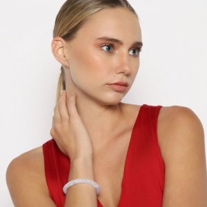 Hermoso brazalete de malla blanca, con cristales dentro en color blanco y broche de imán. Fabricado en una estructura de aleación de platino con rodio sin níquel.