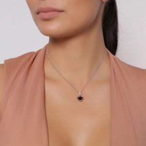 Lindo dije en baño de oro blanco de 18 quilates, diseño de corazón con incrustaciones de cristales en color blanco y morado. Fabricado en una estructura de aleación de platino con rodio sin níquel.
