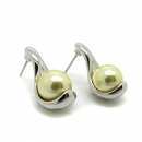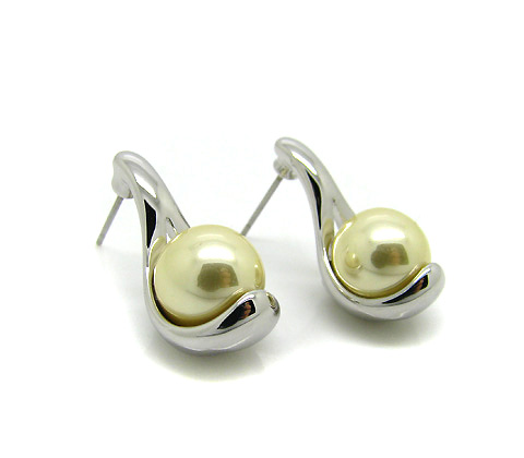 Preciosos aretes, en baño de oro blanco de 18 quilates, con diseño de onda con perla blanca. Fabricado en una estructura de aleación de platino con rodio sin níquel.
