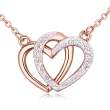 Hermoso collar en baño de oro blanco y rosa de 18 quilates, fino diseño de corazones entrelazados con incrustaciones de cristales en color blanco. Fabricado en una estructura de aleacion de platino con rodio sin niquel. 1. Joyeria Hipo alergenica. 2. Incluye cajita de Joyeria. 3. Garantia de 30 dias por defectos de fabrica.