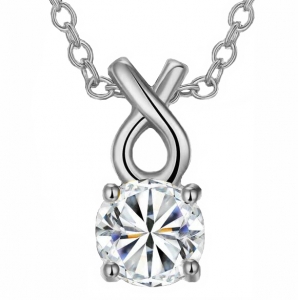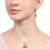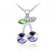 Dije con cadena en baño de oro blanco de 18 quilates, diseño de cereza con incrustaciones de cristales en color blanco, morado y verde. Fabricado en una estructura de aleación de platino con rodio sin níquel.