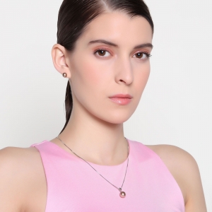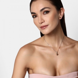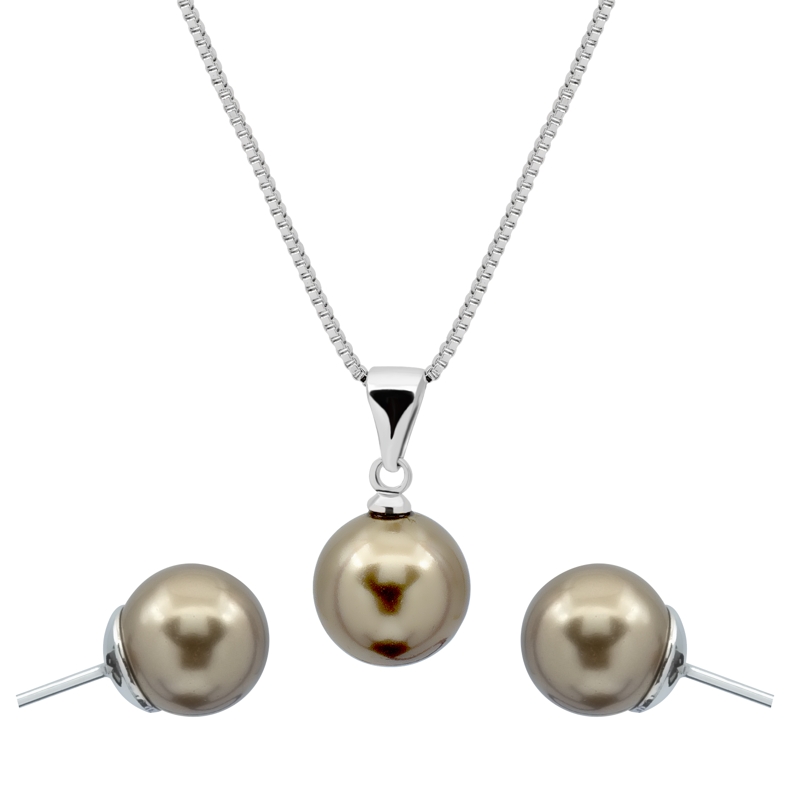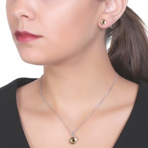 Juego en baño de oro blanco de 18 quilates, fino diseño con perlas en color bronze. Fabricado en una estructura de aleación de platino con rodio sin níquel.