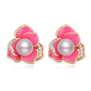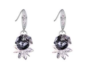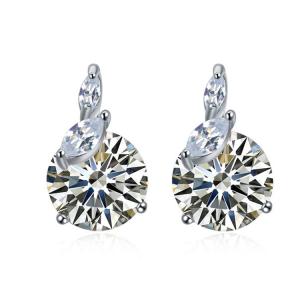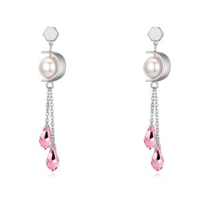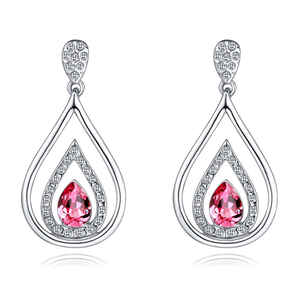 Hermosos aretes en baño de oro blanco de 18 quilates, diseño de gota con incrustaciones de cristales en color blanco y rosa. Fabricado en una estructura de aleación de platino con rodio sin níquel.
