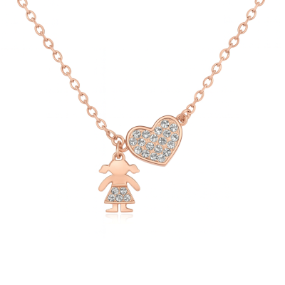 Tierno dije en baño de oro rosa de 18 quilates, diseño de corazón y niña con incrustaciones de cristales en color blanco Fabricado en una estructura de aleación de platino