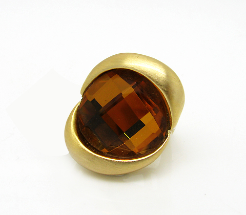 Bonito anillo, en baño de oro amarillo de 18 quilates, diseño oval, con acabado mate y cristal ámbar corte circular. Fabricado en una estructura de aleación de platino con rodio sin níquel.