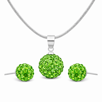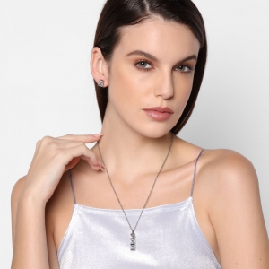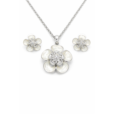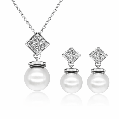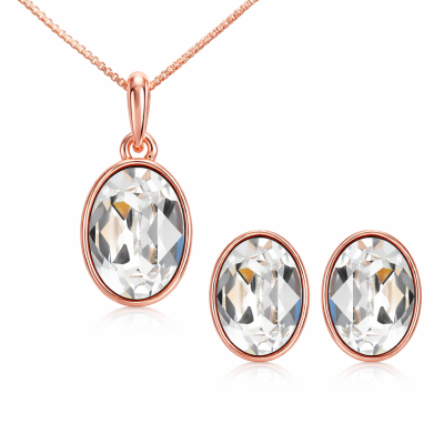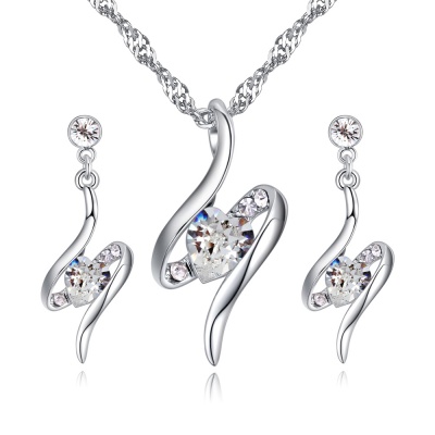 Juego de aretes y dije con cadena en acero inoxidable blanco, lindo diseño con incrustaciones de cristales en color blanco corte princesa.