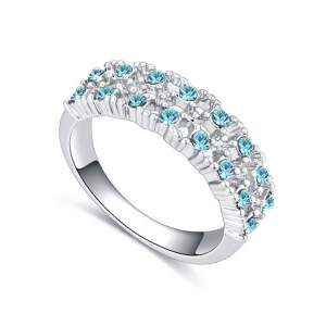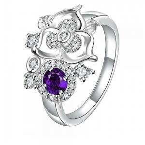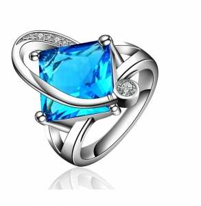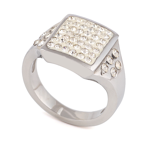 Precioso anillo en baño de oro blanco de 18 quilates , diseño de cuadro, con incrustaciones de cristales en color blanco. Fabricado en una estructura de aleación de platino con rodio sin níquel.