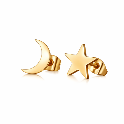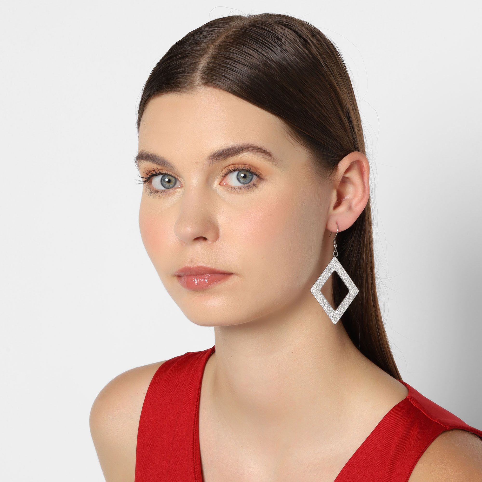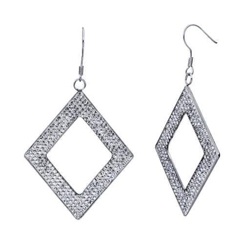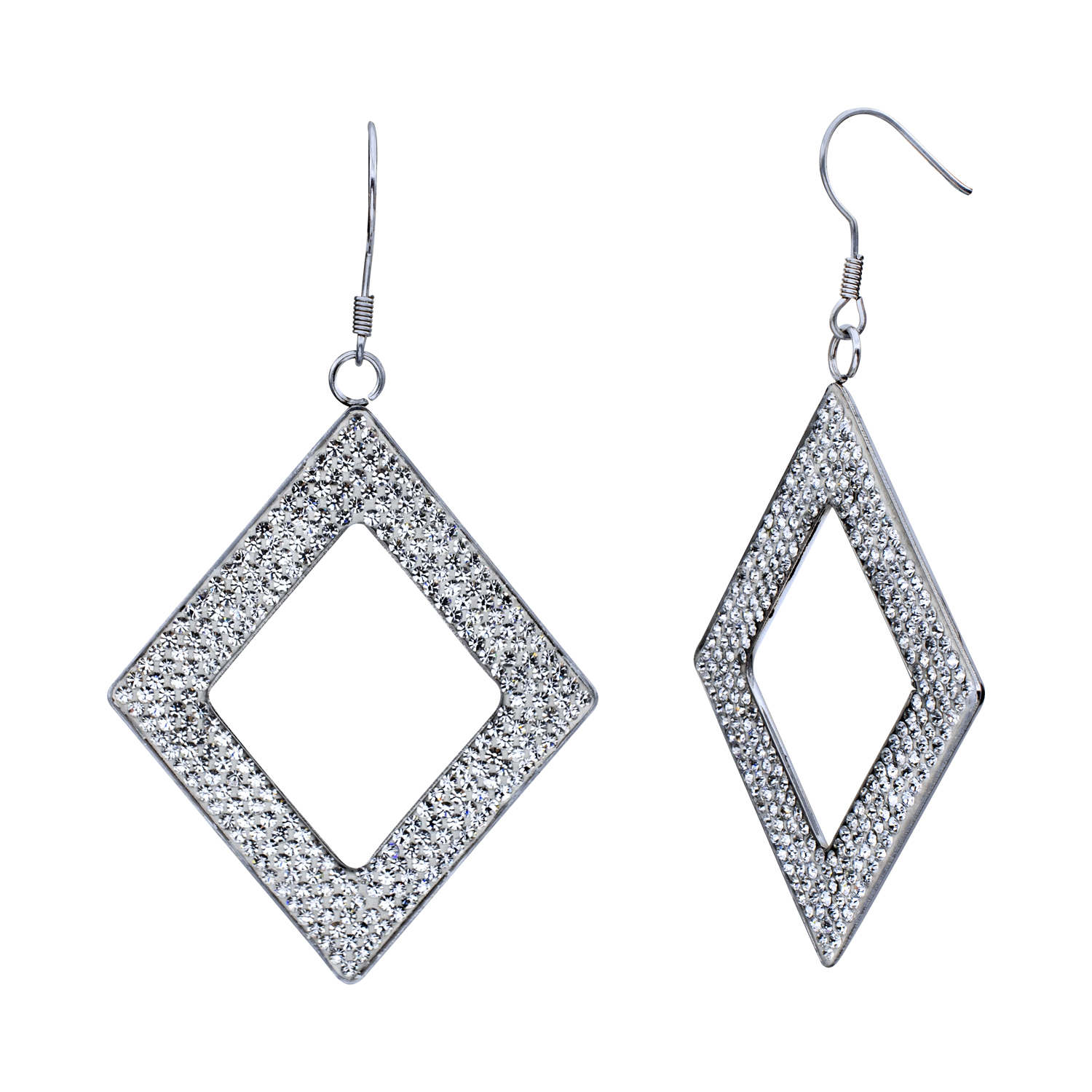 Aretes en acero inoxidable, diseño de rombo con incrustaciones de cristales blancos.