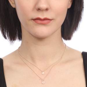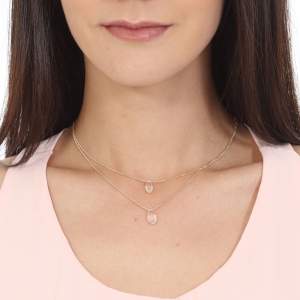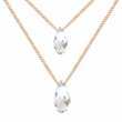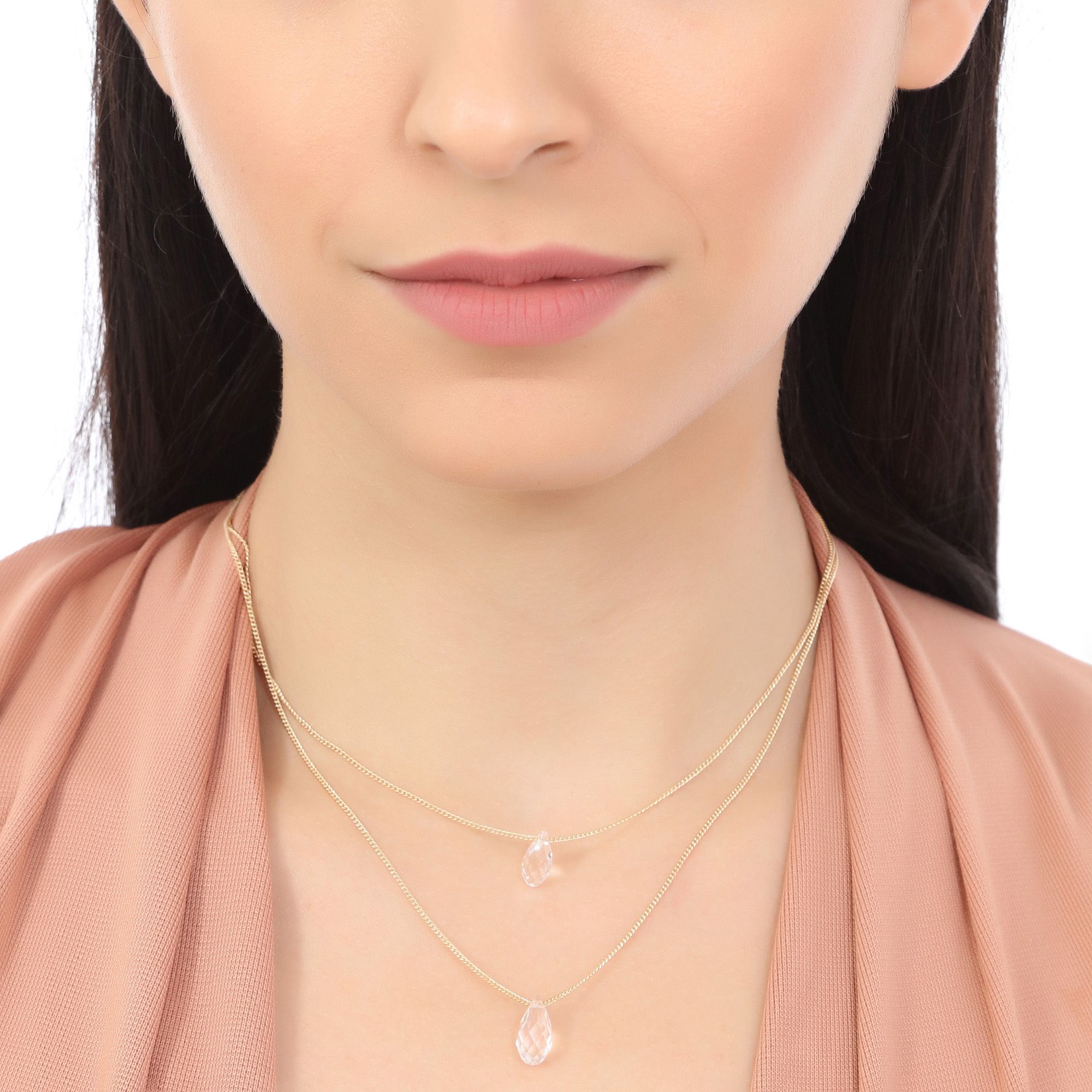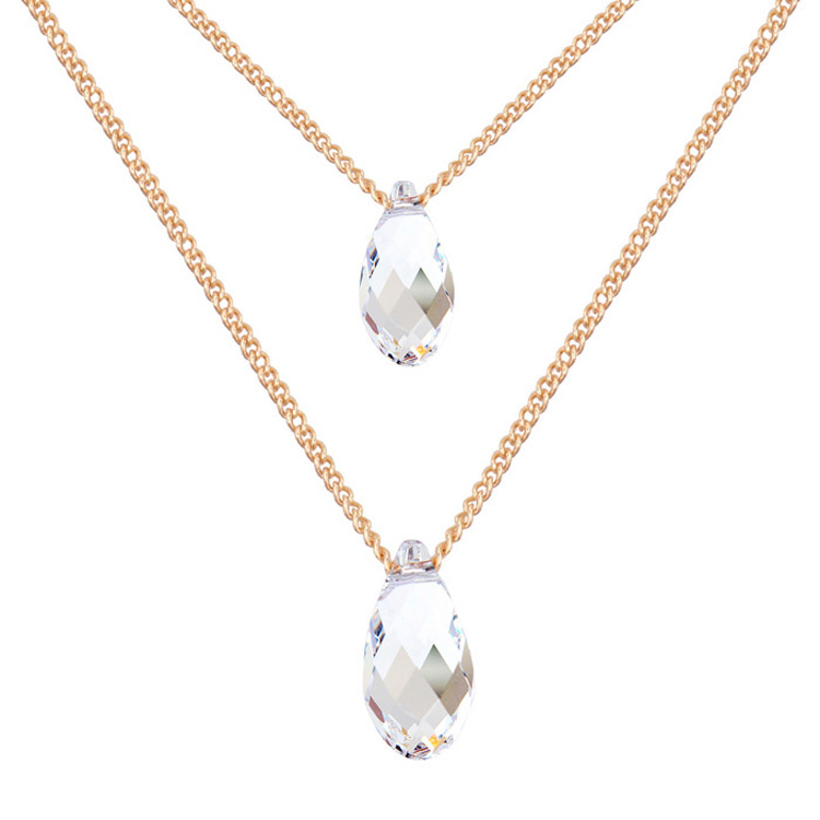 Precioso collar doble en baño de oro amarillo de 18 quilates, diseño de gota con incrustaciones de cristales en color blanco. Fabricado en una estructura de aleación de platino con rodio sin níquel.