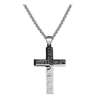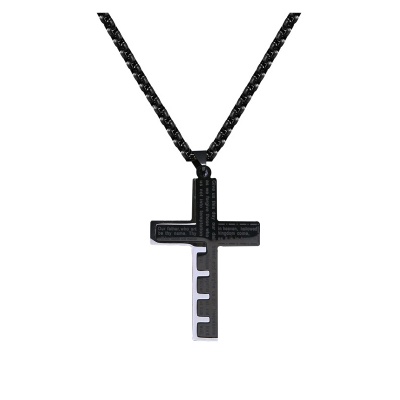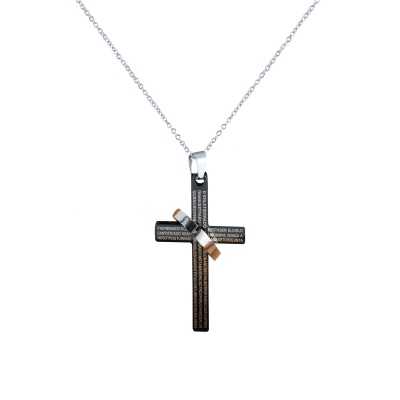 Dije de acero inoxidable diseño de cruz en color negro, con grabado del padre nuestro.1. Joyería hipoalergénica.2. Incluye cajita de joyería.3. Garantía de 30 días por defectos de fabrica