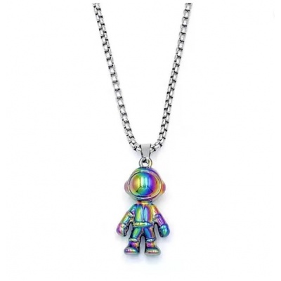 Dije de acero inoxidable, diseño de astronauta color tornasol con cadena. 1. Joyería hipoalergénica.2. Incluye cajita de joyería.3. Garantía de 30 días por defectos de fabrica.
