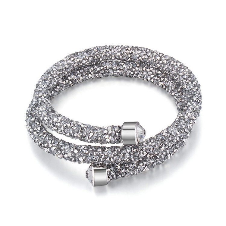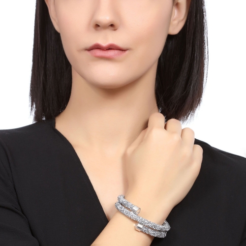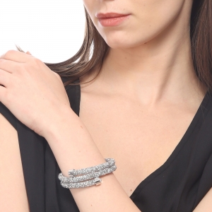 Brazalete de doble vuelta con detalles de baño de oro blanco de 18 quilates y cristales en color blanco y gris.