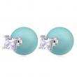 Lindos aretes en baño de oro blanco de 18 quilates, detalle de perla verde agua con cristal en color blanco corte princesa. Fabricado en una estructura de aleación de platino con rodio sin níquel.