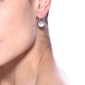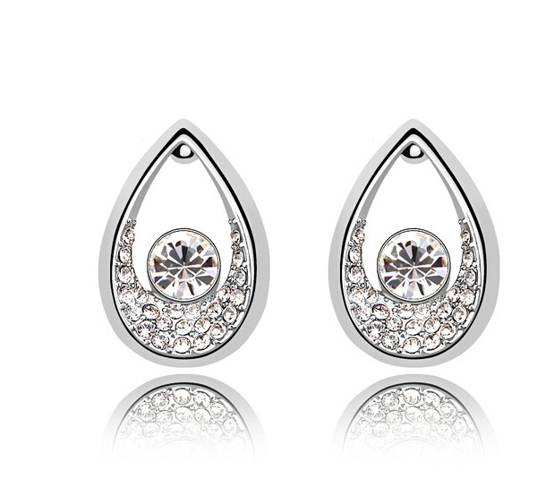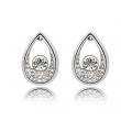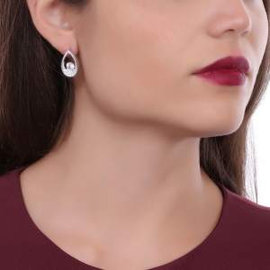 Lindos aretes en baño de oro blanco de 18 quilates, diseño de gota con incrustaciones de cristales en color blanco. Fabricado en una estructura de aleación de platino con rodio sin níquel.