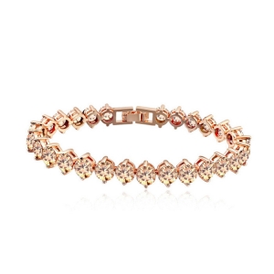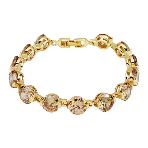 Hermosa pulsera en baño de oro amarillo de 18 quilates, exquisito diseño con incrustaciones de cristales en color blanco.