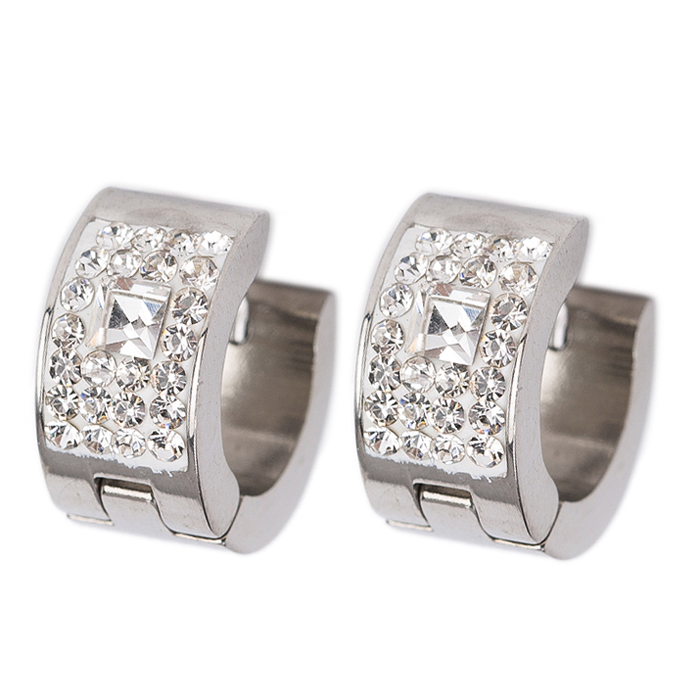 Aretes de acero inoxidable con incrustaciones de cristales en color blanco. Fabricado en una estructura de aleación de platino con rodio sin níquel.