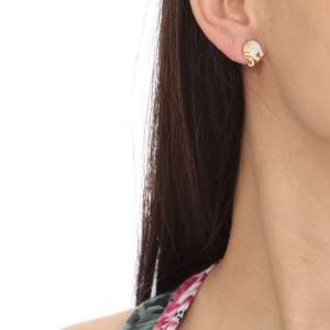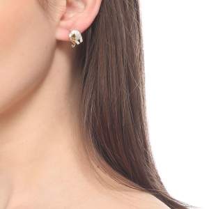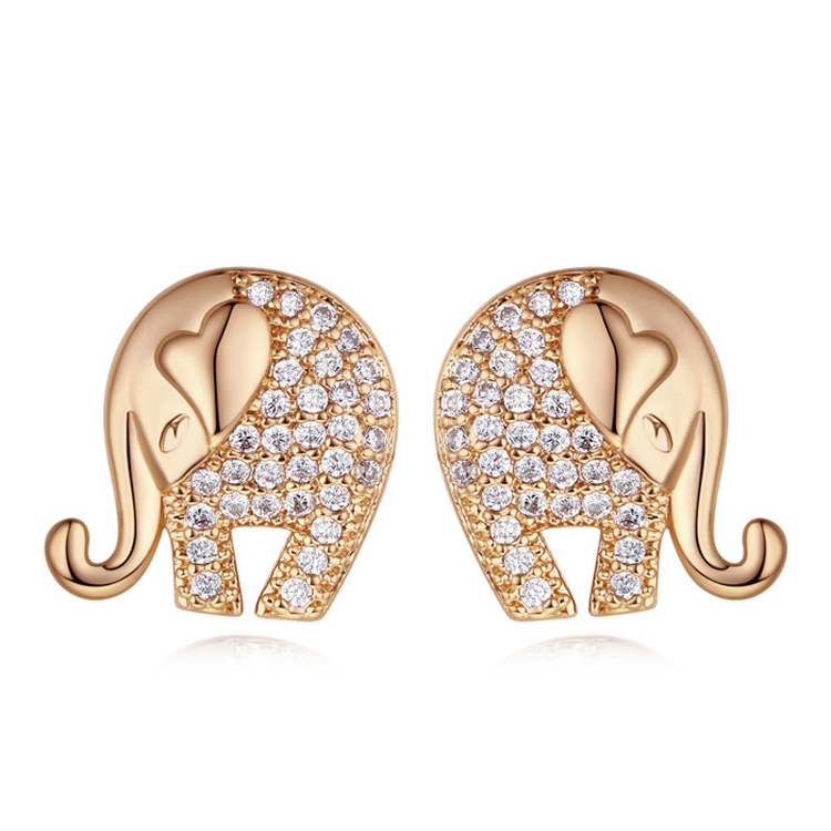 Aretes en baño de oro amarillo de 18 quilates, diseño de elefante con incrustaciones de cristales en color blanco. Fabricado en una estructura de aleación de platino con rodio sin níquel.